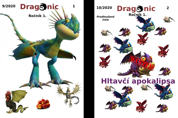 Dragonic je můj časopis, který dělám pro kamarády ze skauta. Vychází jednou za měsíc až měsíc a půl, stojí okolo dvou korun. Má i svoji internetovou stránku.